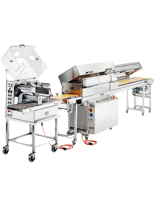 - regulovatelný ofuk přebytku čokolády z výrobků.